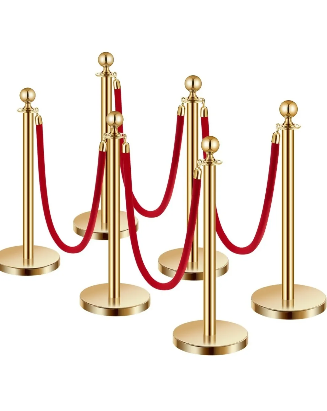 10 foot red carpet6 gold stanchions4 red velvet ropes